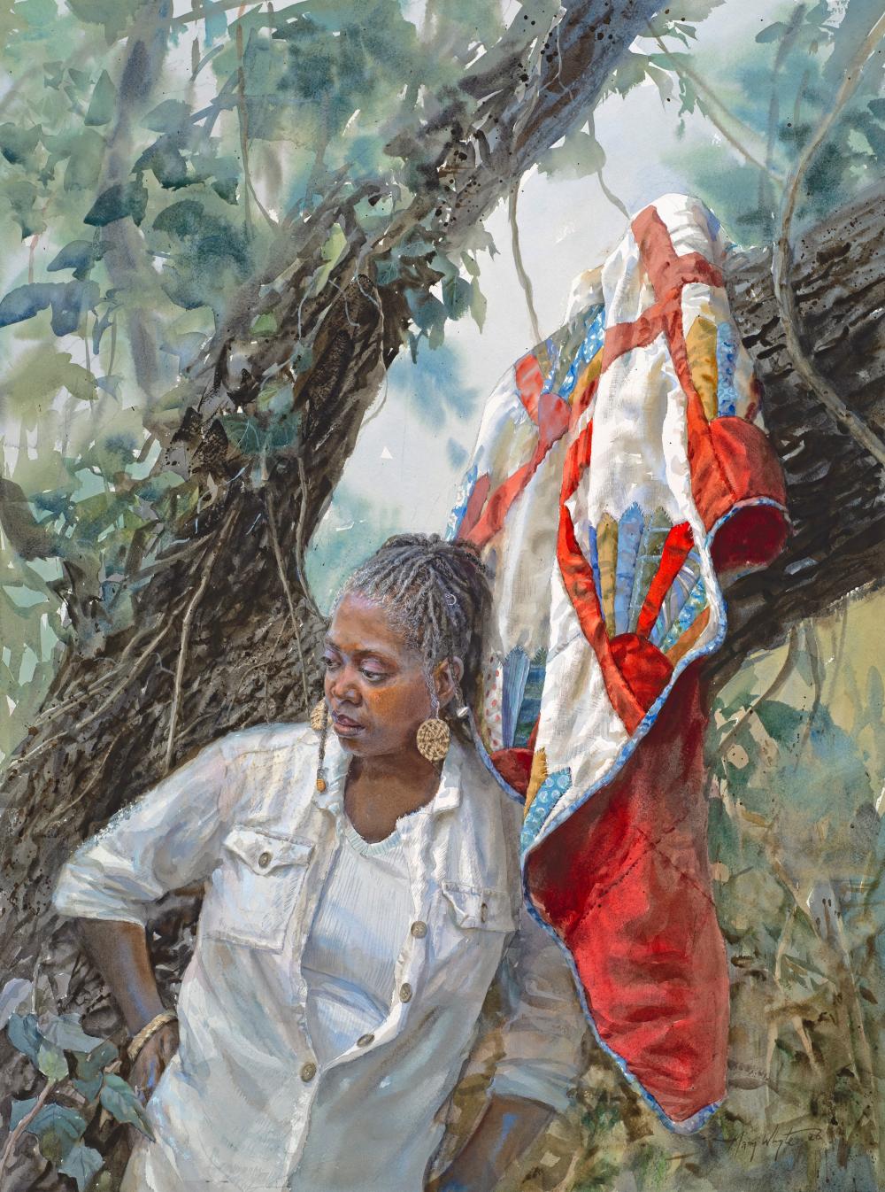 “I’ve painted Tesha’s story since she was a young girl on Johns Island, capturing her as she grew from a mother into a grandmother. A few years ago, she faced a cancer battle with impossible odds – and won. I am so moved to share this first work of her since her recovery; it’s a tribute to a dear friend and a true survivor.” Mary Whyte
